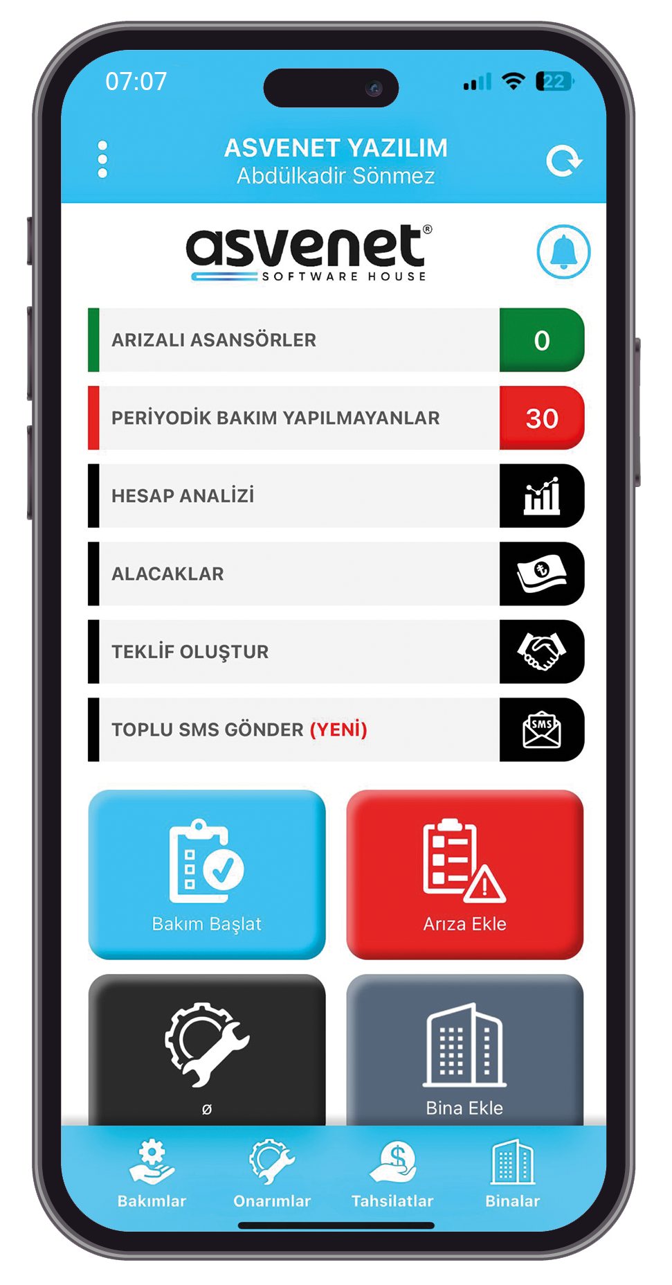 AsBakım uygulaması üzerinden karekodlar okutularak asansör bakım işlemleri gerçekleştirilir.